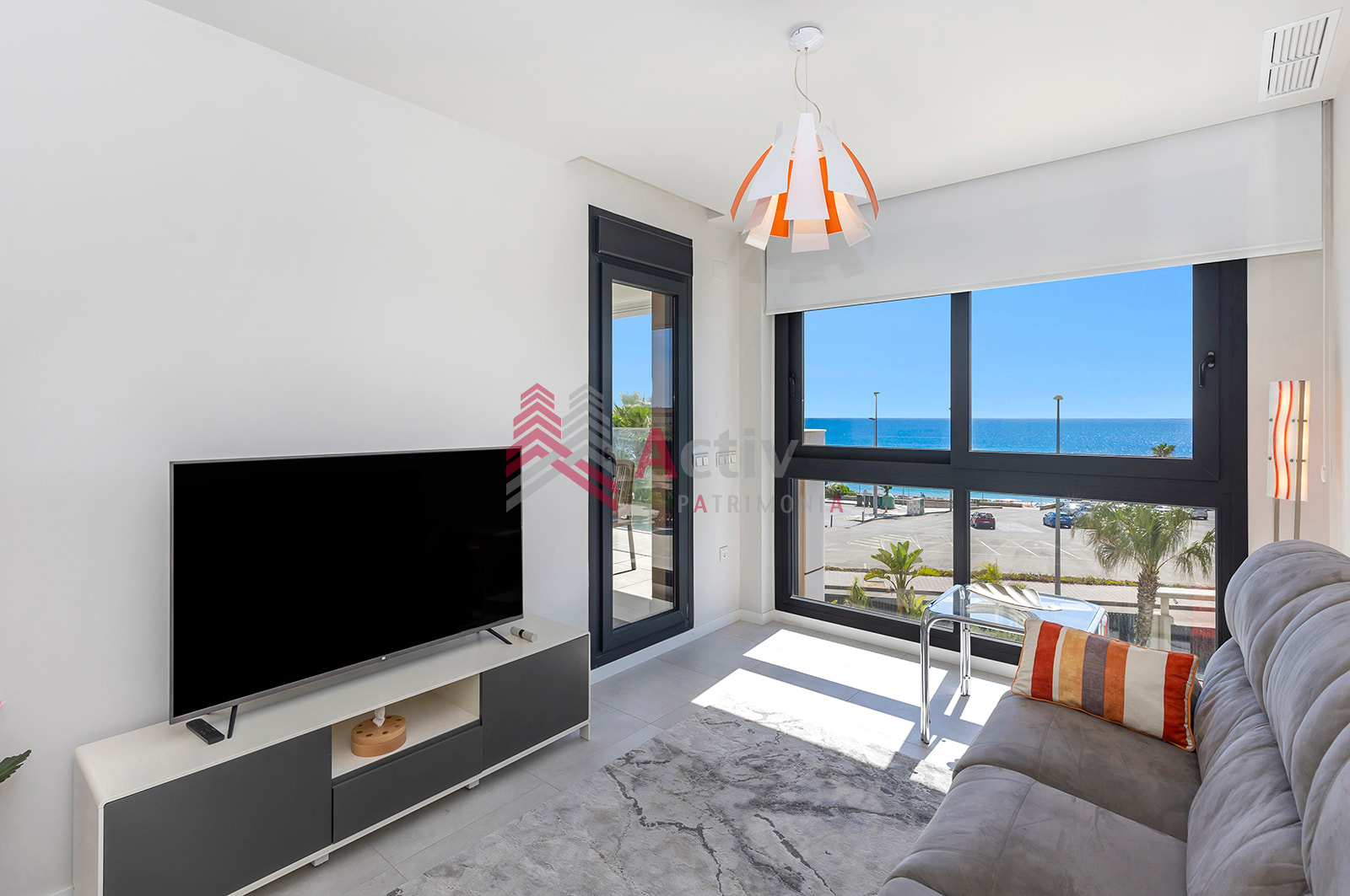 Au Sud de la Costa Blanca, avec plus de 300 jours d'ensoleillment par an, ce splendide appartement T3 se caractérise par son exceptionnelle vue sur la mer et sa proximité à la plage de Las Mil Palmeras. Contemplation assurée ! Ce bien se compose d'une cuisine équipée et aménagée, séjour, 2 chambres et de 2 salles d'eau. Le séjour et une chambre donnent sur la terrasse face à la mer. L'appartement est vendu avec une place de parking intérieure et un cellier. La Résidence est fermée et propose jardin et piscine communs. Idéal pour une résidence principale ou secondaire, facile à vivre. Vendu meublé et équipé.