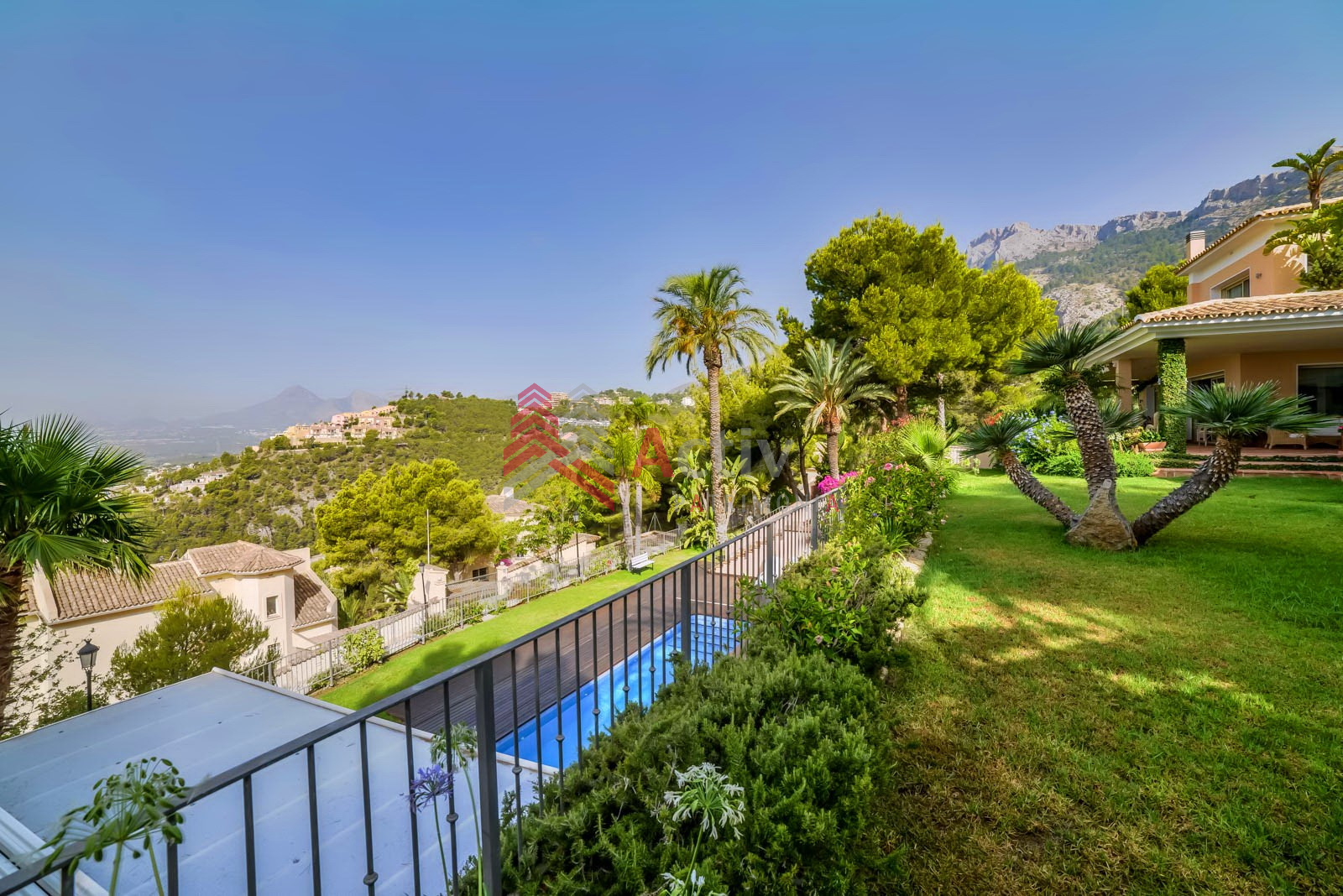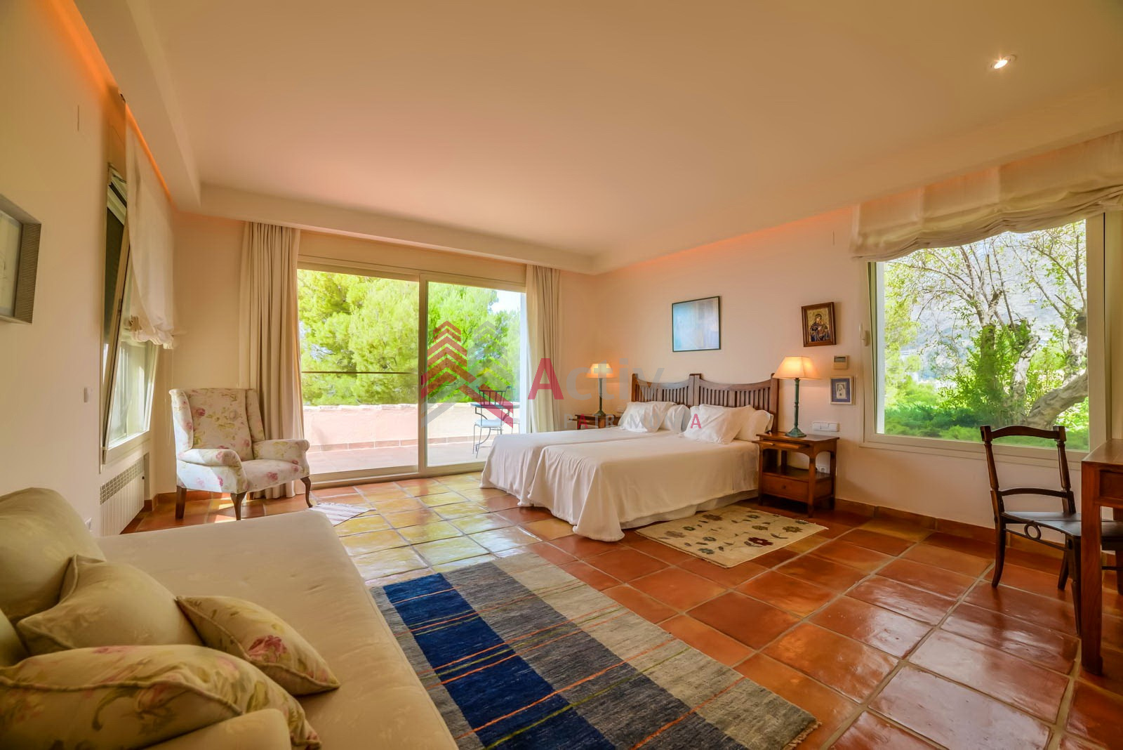 7 chambres avec d'immenses dressings, 7 salles de bains, 1 salle de bains/toilettes pour visiteurs, 2 salons spacieux avec cheminée et une salle à manger qui ont un accès direct à la terrasse d'où vous avez une vue IMPRENABLE sur la mer et la Baie d'Altea.