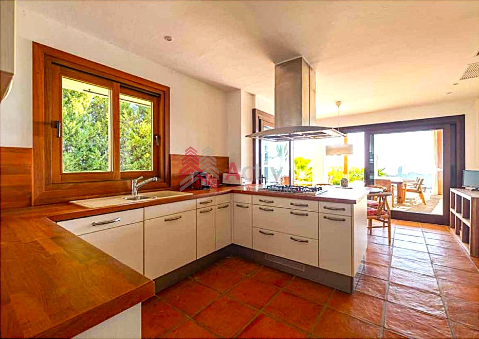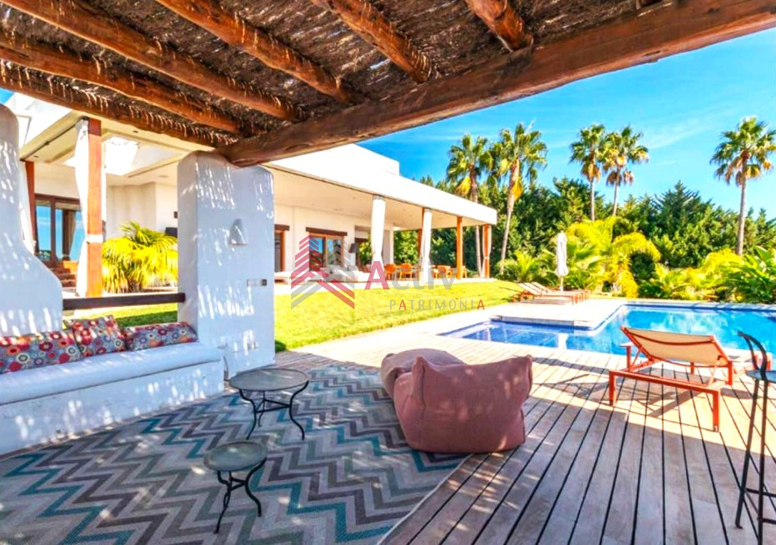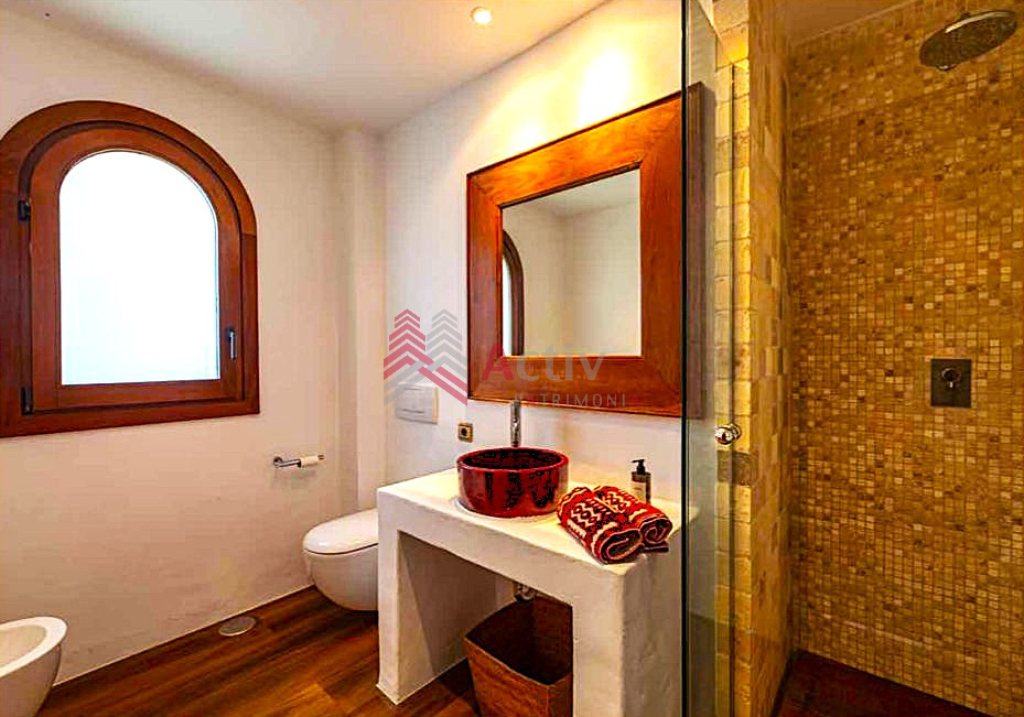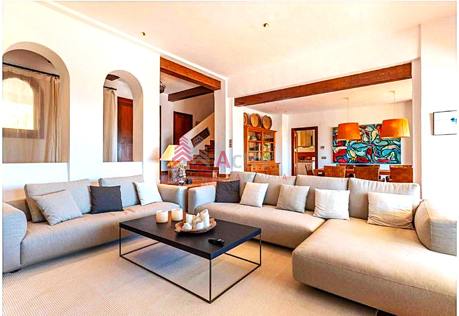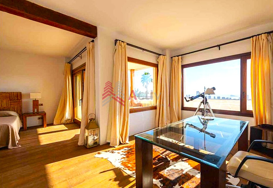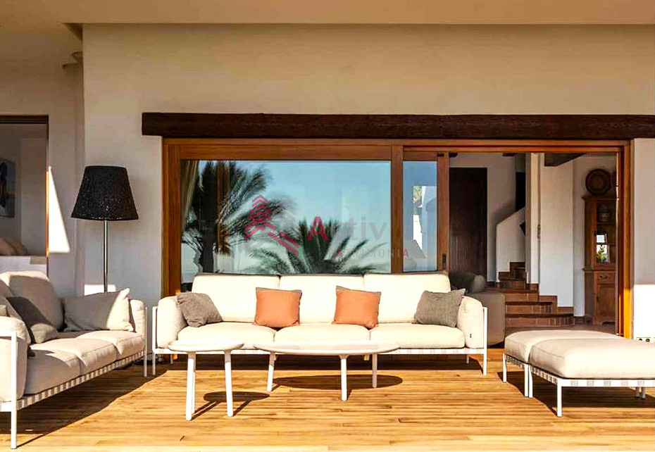 Cette villa a été construite avec des matériaux de la plus haute qualité, les poutres en bois ajoutent du charme et un style unique d’Ibiza à la superbe propriété.