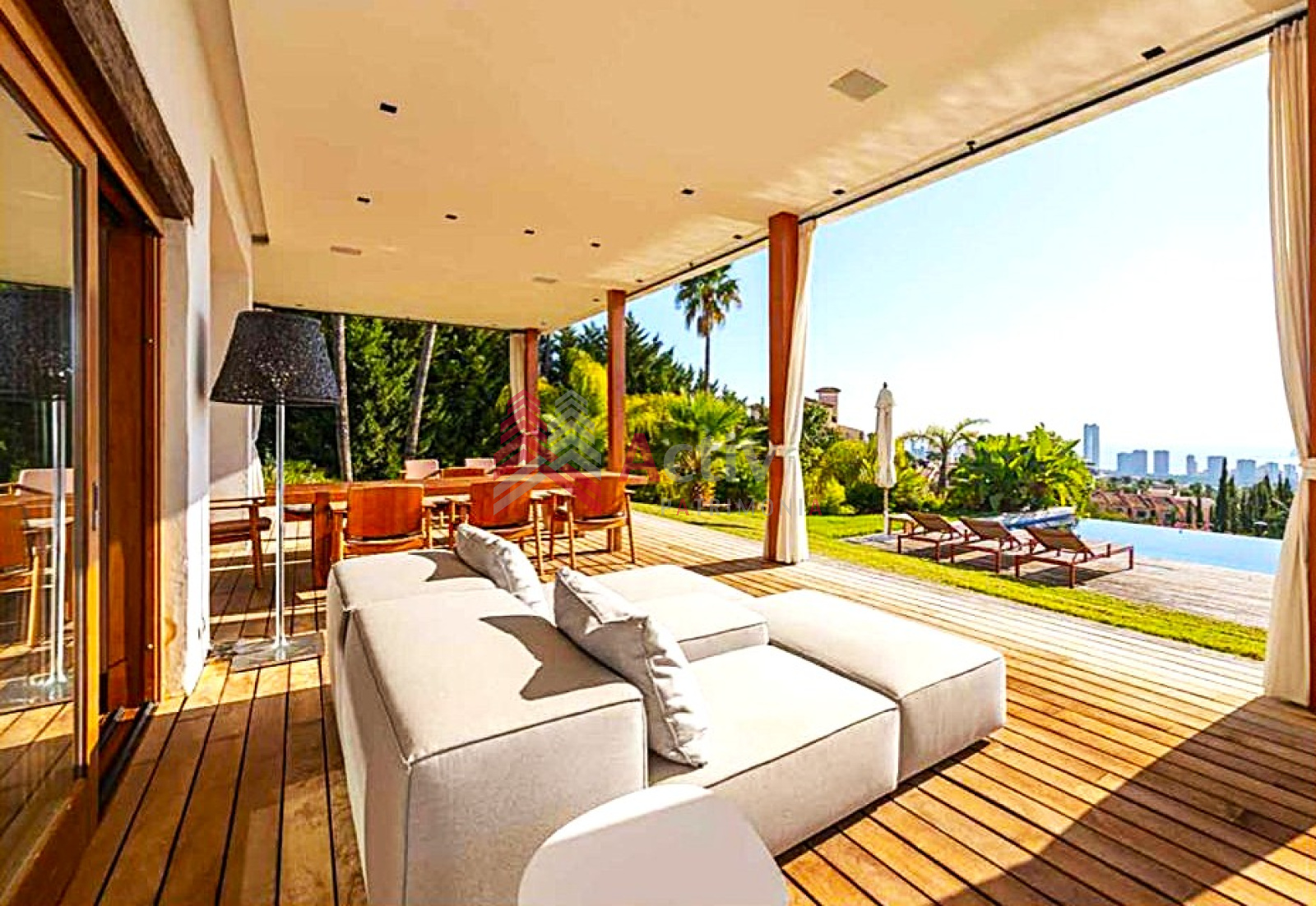 larges baies vitrées pour profiter au maximum de la luminosité naturelle, et, des vues incroyable sur la Piscine et la Mer.