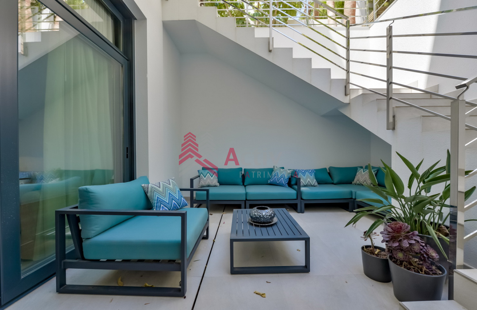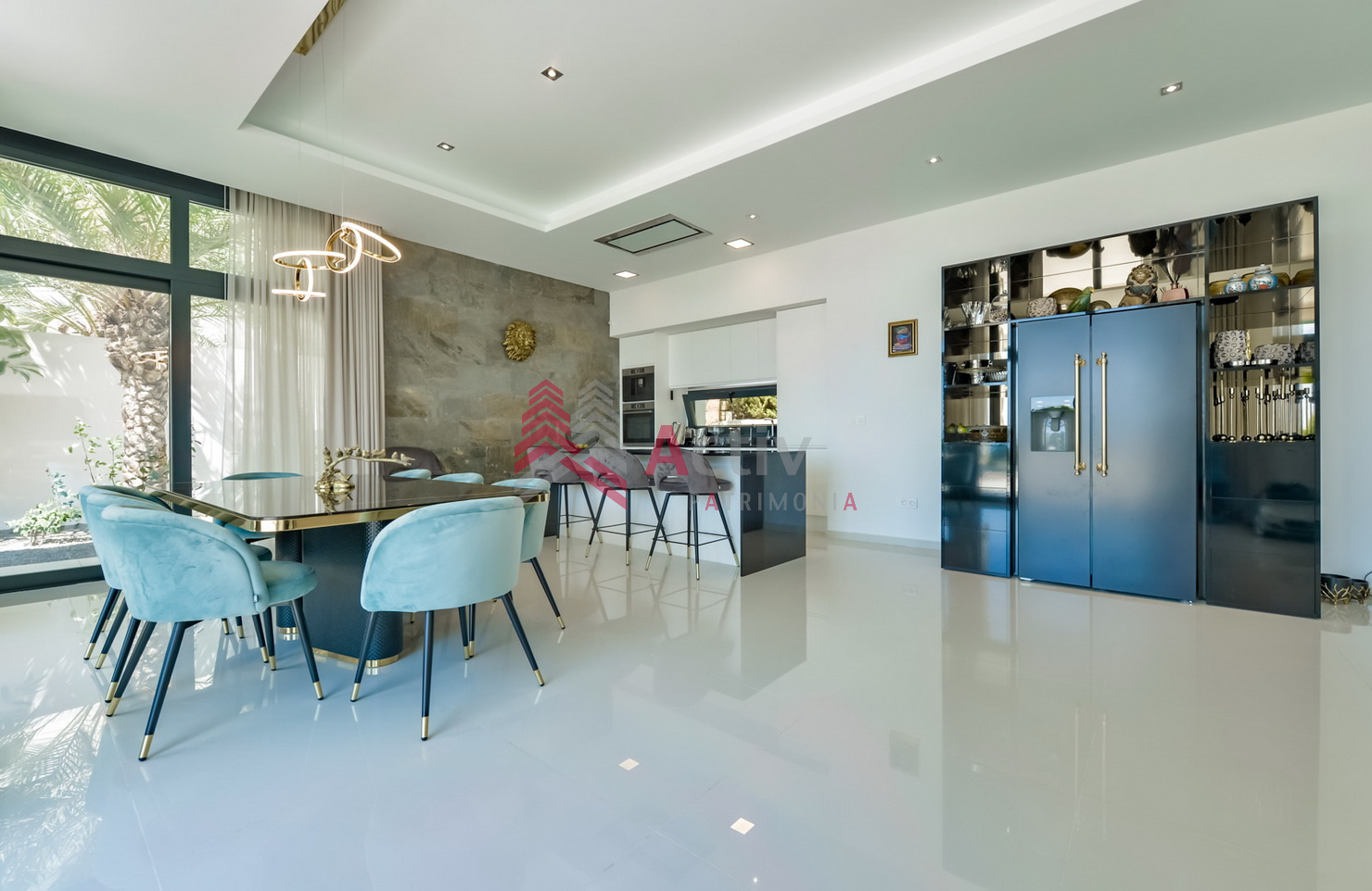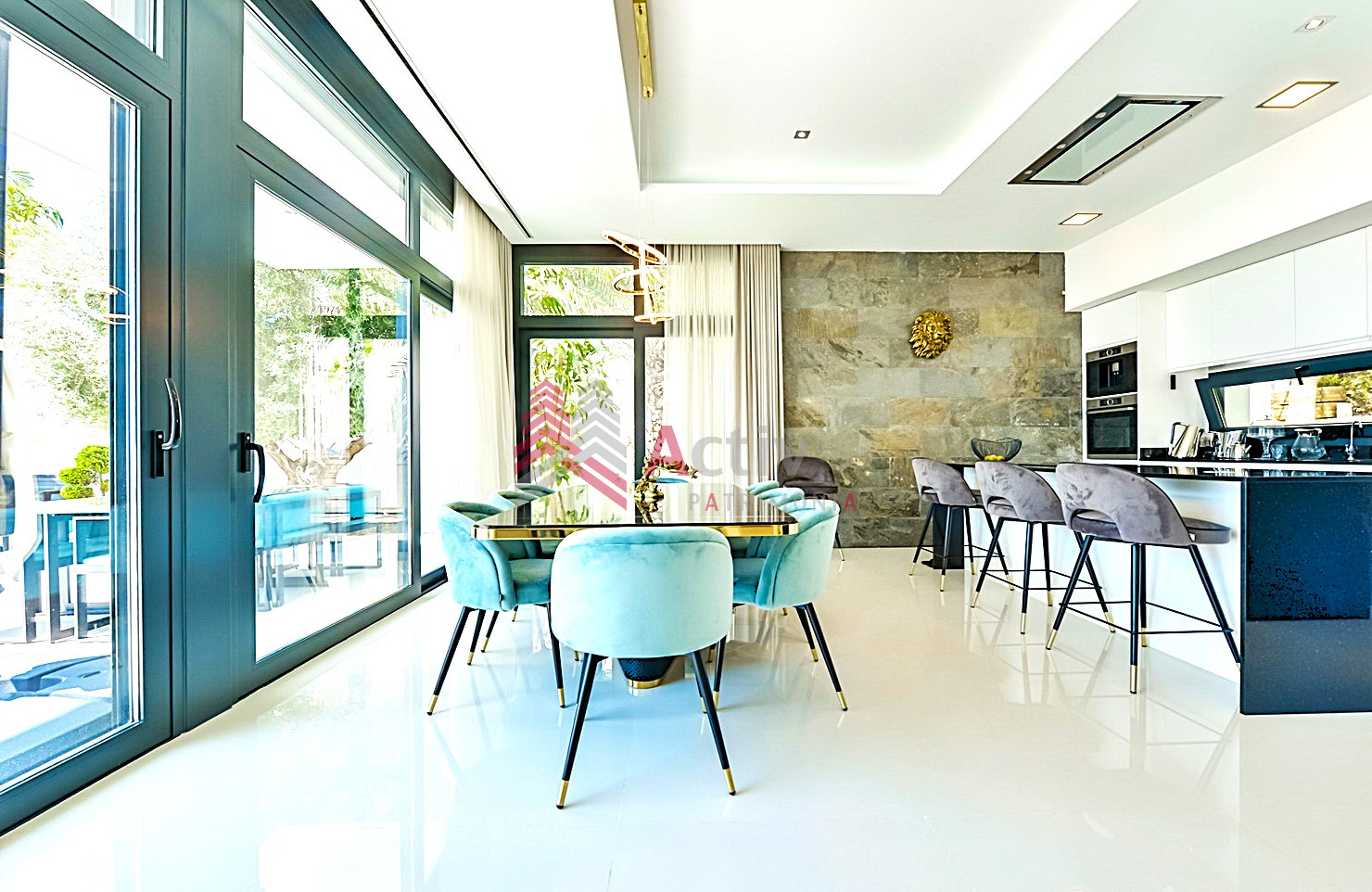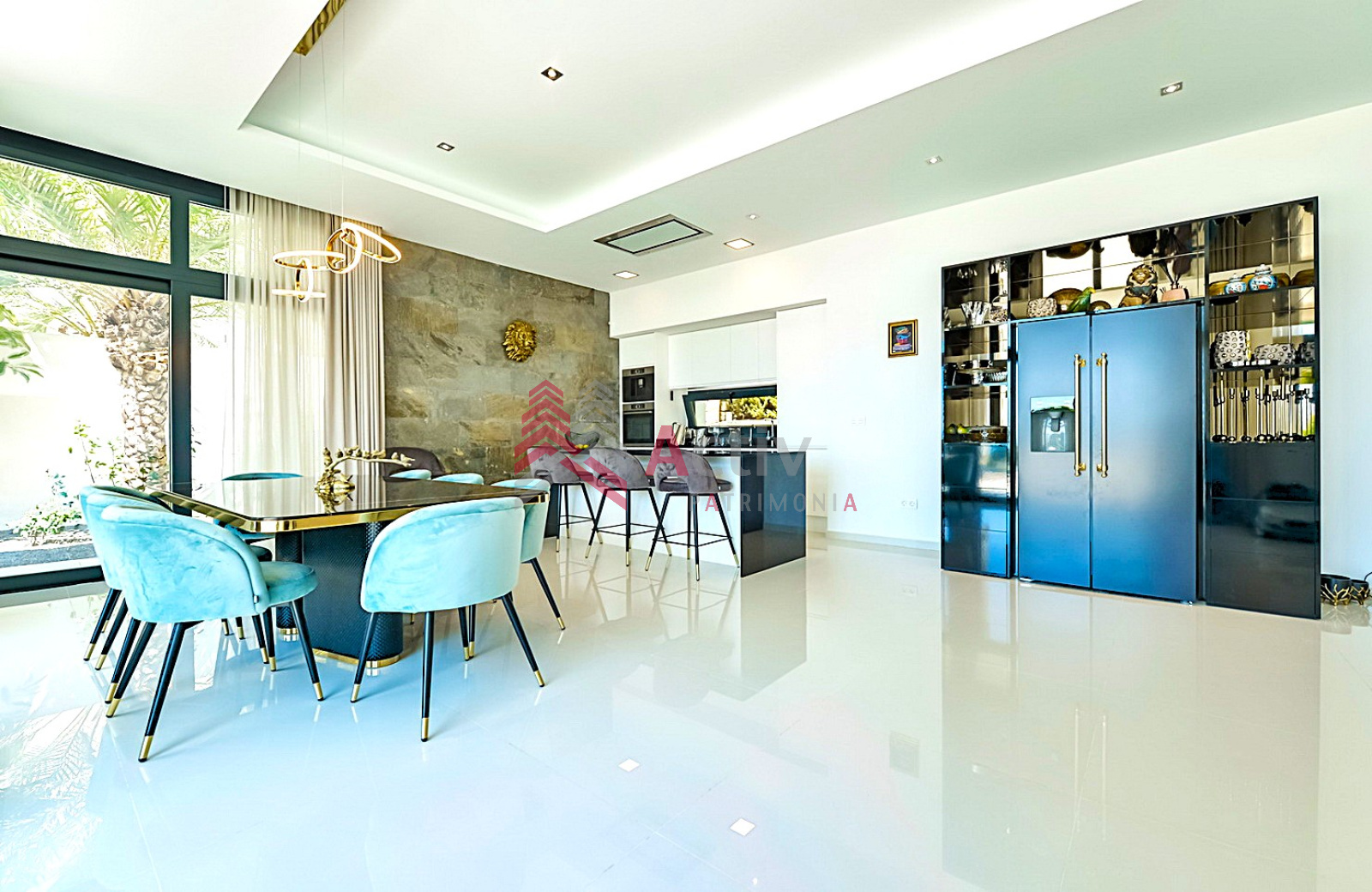 L'intérieur est fini avec des matériaux de haute qualité et équipé d'appareils électroménagers de marque, améliorant la fonctionnalité et le style de la villa.