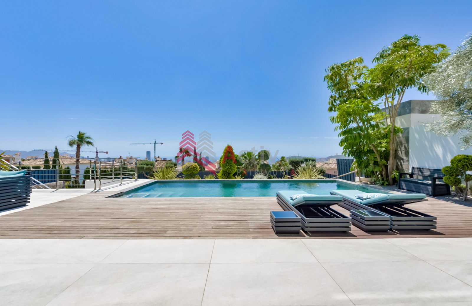 Exquise Villa avec un design architectural contemporain offrant des vues imprenables sur la Mer et les Montagnes.